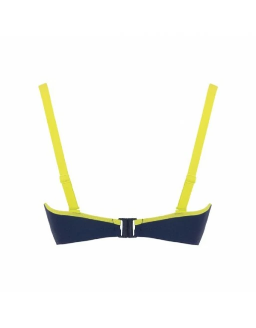 Kan ook gedragen worden in combinatie met een klassieke donkerblauwe bikini slip.