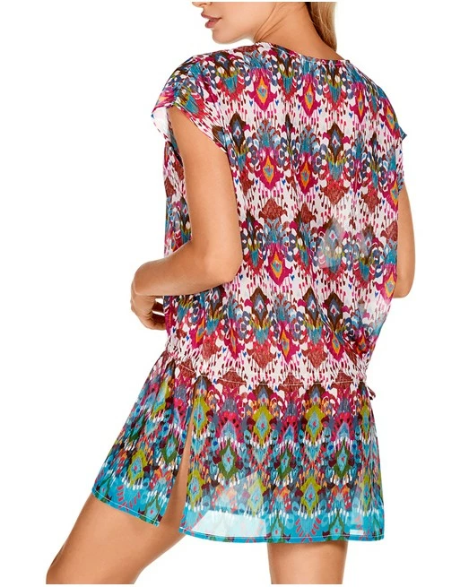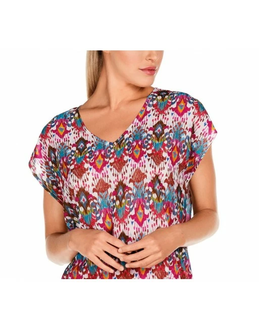 Dolores Cortés kaftan met korte mouw en geknoopte taille.