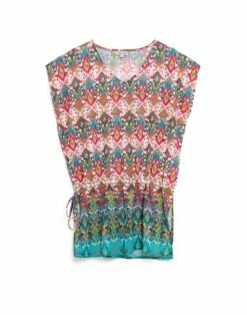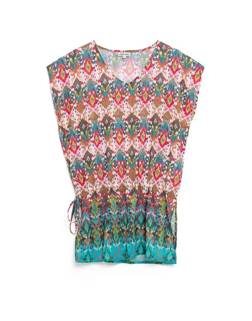 Kaftan met korte mouw en geknoopte taille