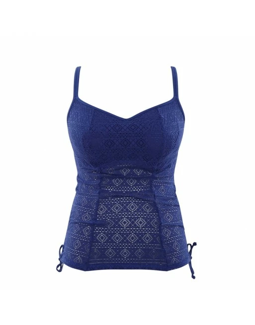 De Panache Swim Anya Crochet tankini biedt door de drievoudige laag in de binnen cups een verhoogde pasvorm en dit tot een M-cup.