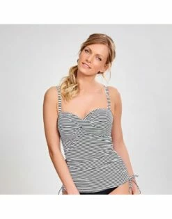 Deze tankini kan je combineren met het bijpassende broekje van deze reeks of een effen zwarte bikini slip uit de Anya reeks.