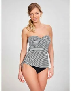 Voor een mooi egaal gebruinde decolleté kan je deze bandeau tankini strapless dragen