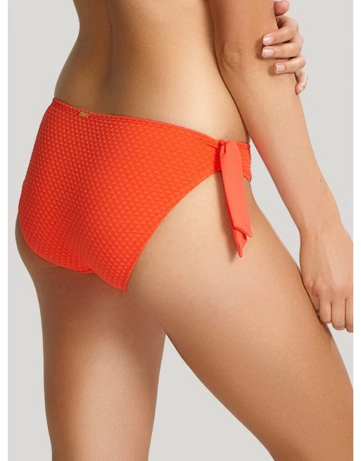 De levendige oranje textuur biedt een prachtig chique en slanke toevoeging aan deze lintjes bikini van Panache Swim Echo.