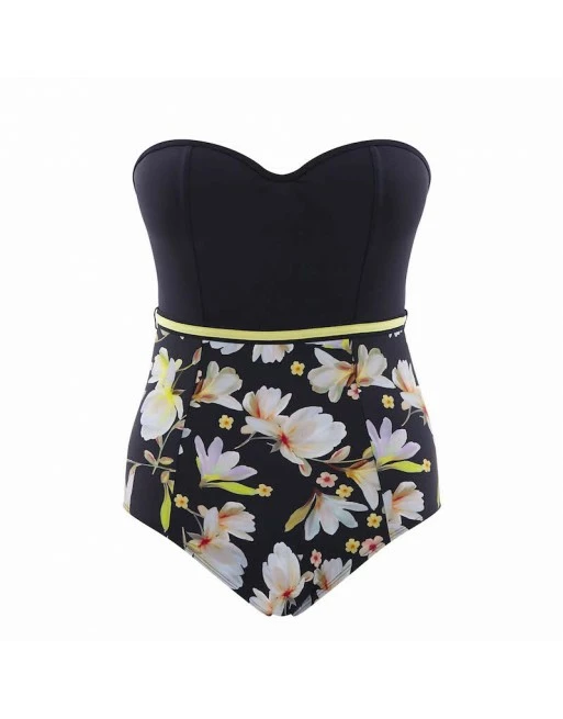 Het Florentine badpak heeft een gebloemd onder paneel voor een flatterende pasvorm die de illusie creëert van een verlengd lichaam en een kleiner borstgebied.