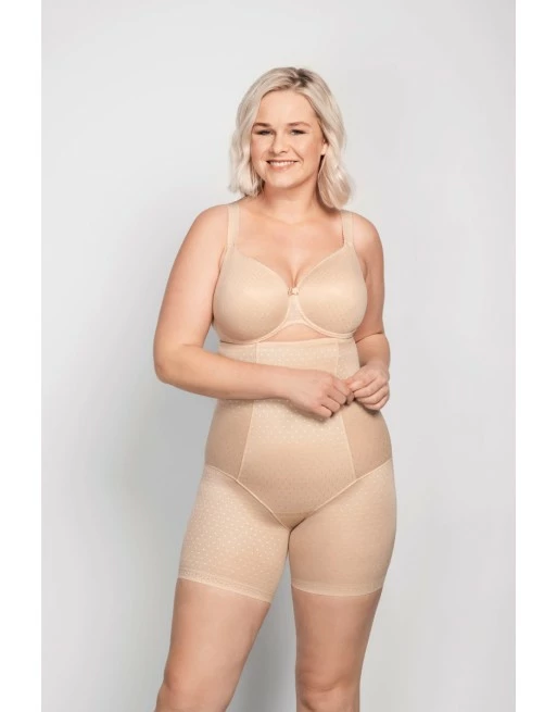 - De functionele rug is gemaakt van knuffelbare Power-Lace stof in een polka dot design en is onderlegd met stevige tule – voor maximale ondersteuning en comfort